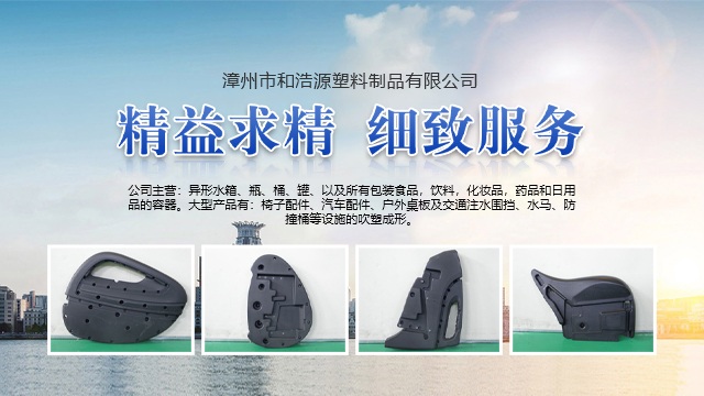 漳州市和浩源塑料制品有限公司是漳州塑料制品行業(yè)的知名企業(yè),本公司擁有專業(yè)的團(tuán)隊,從產(chǎn)品設(shè)計、模具開發(fā)到生產(chǎn),并具有先進(jìn)的生產(chǎn)設(shè)備,精湛的生產(chǎn)工藝,嚴(yán)格的管理,具備根據(jù)用戶需要進(jìn)行設(shè)計、制造生產(chǎn)用戶所需產(chǎn)品的能力。 公司主營:異形水箱、瓶、桶、罐、以及所有包裝食品,飲料,化妝品,藥品和日用品的容器。大型產(chǎn)品有:椅子配件、汽車配件、戶外桌板及交通注水圍擋、水馬、防撞桶等設(shè)施的吹塑成形。 “誠實守信,互惠共贏”,是我們的經(jīng)營理念;“精益求精,細(xì)致服務(wù)”,是我們的工作準(zhǔn)則,“堅持行業(yè)標(biāo)準(zhǔn),創(chuàng)造時代精品,追求優(yōu)良的品質(zhì)”,是我們的質(zhì)量標(biāo)準(zhǔn)和目標(biāo);“以人為本,科技創(chuàng)新,簡捷嚴(yán)明,管理規(guī)范”是我們管理機制的核心內(nèi)容;“生產(chǎn)優(yōu)良產(chǎn)品,提供細(xì)致的服務(wù)”,是我們的承諾。